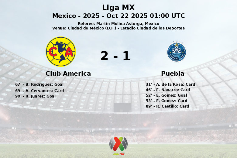 Home Matches Club America vs Puebla Oct 22 2025 01:00 UTC