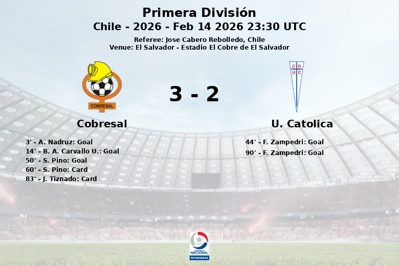 El Salvador, Chile – En un partido electrizante disputado en el Estadio El Cobre de El Salvador, Cobresal derrotó a la Universidad Católica en un encuentro correspondiente a la tercera fecha de la Primera División chilena. El partido, arbitrado por José Cabero Rebolledo, estuvo lleno de emociones y goles.
