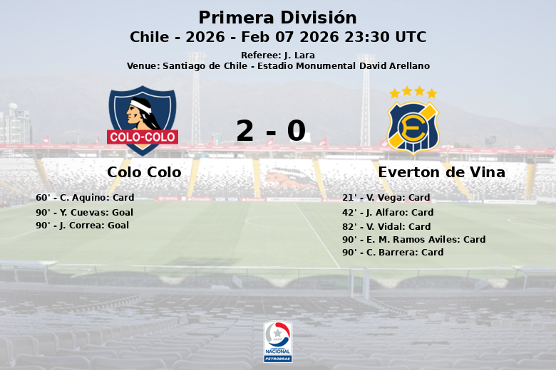 El encuentro, arbitrado por J. Lara, mostró a un Colo Colo dominante en la posesión del balón (53%), generando un total de 18 disparos, aunque con una efectividad no tan alta (solo 6 a puerta). Por su parte, Everton de Viña, con un 47% de posesión, intentó contrarrestar con 10 tiros, pero solo uno logró inquietar realmente al portero rival.