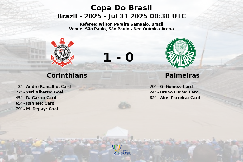 Yuri Alberto abrió el marcador para Corinthians, resarciéndose de un penal fallido y con la misma jugada logrando el gol, dando a su equipo la ventaja inicial. Más tarde, M. Depay amplió la diferencia con un gol gracias a una asistencia de Matheuzinho, consolidando la victoria para el equipo local.