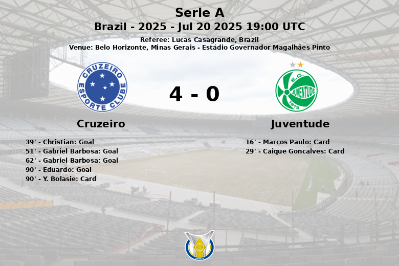 El Cruzeiro demostró ser superior en ataque, con 16 tiros totales, incluyendo 7 a puerta, mientras que el Juventude apenas logró 5 tiros, ninguno de ellos con dirección al arco. La victoria consolida la posición del Cruzeiro en la Serie A.