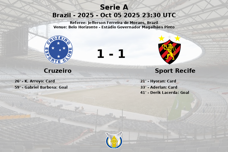 La respuesta de Cruzeiro llegó en la segunda mitad, al minuto 59, gracias a un gol de Gabriel Barbosa, quien aprovechó una asistencia de Matheus Pereira para igualar el encuentro. A lo largo del partido, ambos equipos mostraron intensidad, reflejada en las tarjetas amarillas mostradas a K. Arroyo y Aderlan, así como a Hyoran. Cruzeiro cometió 11 faltas, mientras que Sport Recife incurrió en 15. Finalmente, el partido terminó con un empate que deja a ambos equipos con la sensación de que pudieron haber conseguido más.