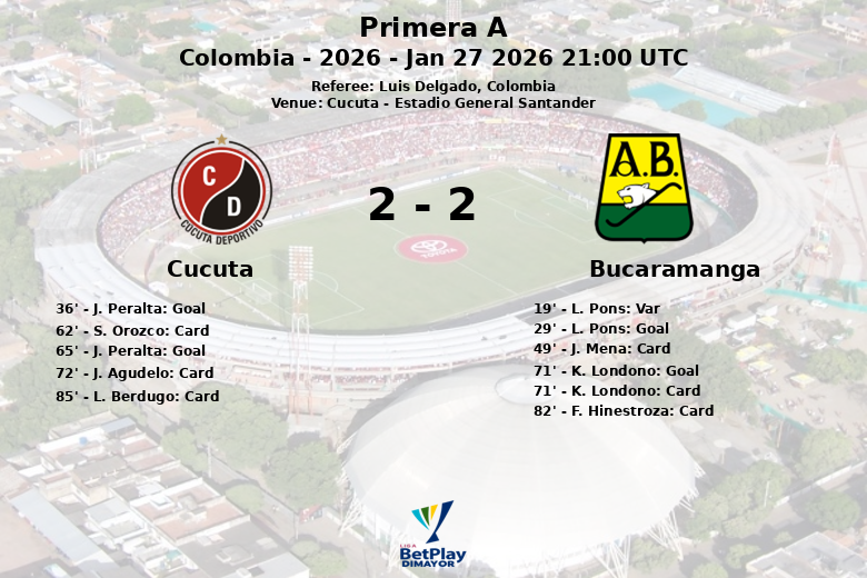 Home Matches Cucuta vs Bucaramanga Jan 27 2026 21:00 UTC