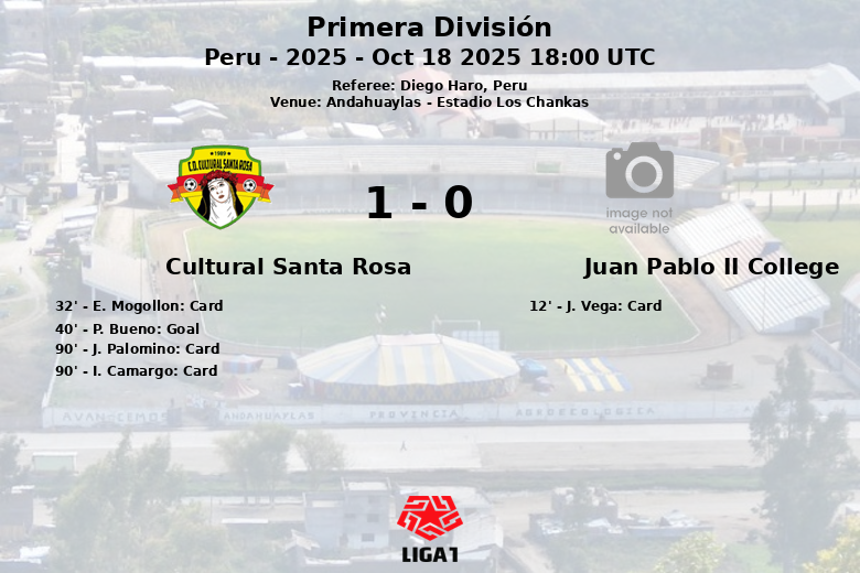Andahuaylas fue testigo de un partido intenso y reñido entre Cultural Santa Rosa y Juan Pablo II College en el Estadio Los Chankas, válido por la fecha 15 del Clausura de la Primera División Peruana 2025. El encuentro, arbitrado por Diego Haro, se caracterizó por un juego táctico y disputado en el mediocampo.