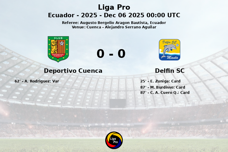 Cuenca, Ecuador – Deportivo Cuenca y Delfín SC empataron 0-0 en un partido correspondiente a la Liga Pro, disputado en el estadio Alejandro Serrano Aguilar. A pesar del dominio territorial del Cuenca, que disfrutó de un 63% de la posesión del balón y generó un total de 20 disparos, la falta de puntería frente al arco rival fue evidente. Solo cuatro de esos remates lograron dirigirse entre los tres palos.