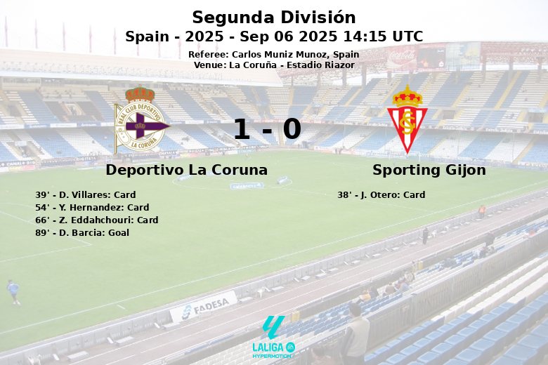 La Coruña, España – En un partido intenso y táctico disputado en el Estadio Riazor, el Deportivo La Coruña logró una victoria por la mínima ante el Sporting Gijón. El encuentro, correspondiente a la cuarta jornada de la Segunda División, estuvo marcado por la alta posesión del balón por parte del Deportivo (61%) y una férrea defensa por parte del Sporting.