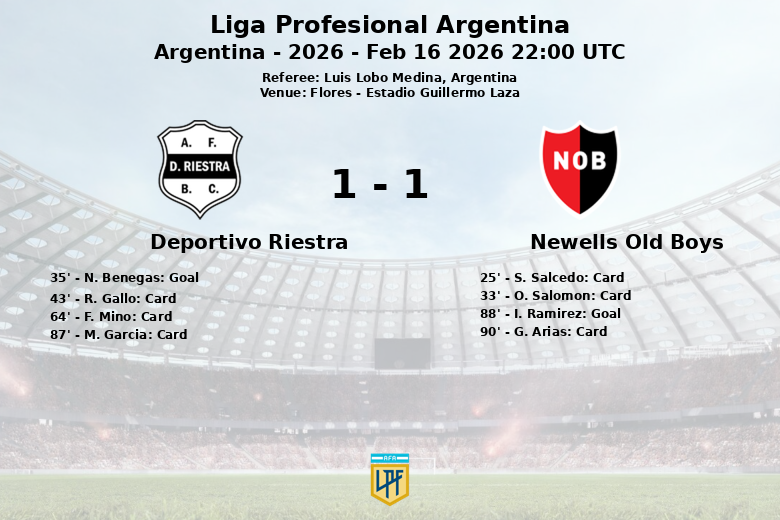 En un partido disputado en el Estadio Guillermo Laza de Flores, Deportivo Riestra y Newell’s Old Boys igualaron en un encuentro tenso y disputado hasta el último minuto. El encuentro, válido por la quinta fecha de la Liga Profesional Argentina, finalizó con un marcador de uno a uno.