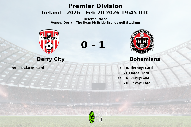 Por su parte, Bohemians, con un 42% de posesión, fue más efectivo en sus ataques. De sus ocho tiros, seis encontraron la portería rival. Aunque solo consiguieron tres saques de esquina, su defensa se mostró sólida y lograron contener los ataques de Derry City. El gol decisivo llegó en el minuto 65, obra de D. Devoy, quien aprovechó la oportunidad para adelantar a su equipo. El partido se caracterizó también por la intensidad en el mediocampo, reflejada en las tres tarjetas amarillas mostradas al conjunto visitante.