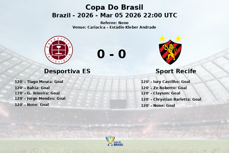 Cariacica, Brasil – En un encuentro de infarto disputado en el Estádio Kleber Andrade, Desportiva ES y Sport Recife empataron en un partido correspondiente a los 1/128 de final de la Copa Do Brasil. La igualdad persistió hasta el último instante, llevando la definición a una dramática tanda de penales al minuto 120.