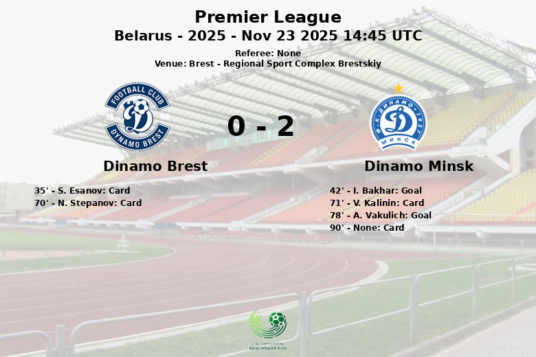 En la segunda mitad, el Dinamo Brest intentó reaccionar, pero se encontró con una defensa sólida del Minsk. N. Stepanov del Dinamo Brest y V. Kalinin del Dinamo Minsk vieron tarjetas amarillas en los minutos 70 y 71 respectivamente. El Dinamo Minsk sentenció el partido al minuto 78 con un gol de A. Vakulich, con asistencia de A. Denisyuk, asegurando así los tres puntos en su visita a Brest. Un jugador del Dinamo Minsk recibio una tarjeta amarilla en el minuto 90. El partido fue parte de la temporada 2025 de la Premier League.