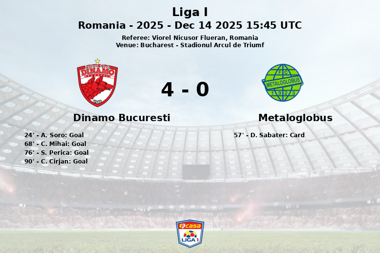 El Dinamo Bucuresti suma tres puntos importantes en su lucha por la Liga I, mientras que Metaloglobus deberá replantear su estrategia para los próximos encuentros. El encuentro se jugó el 14 de diciembre de 2025.