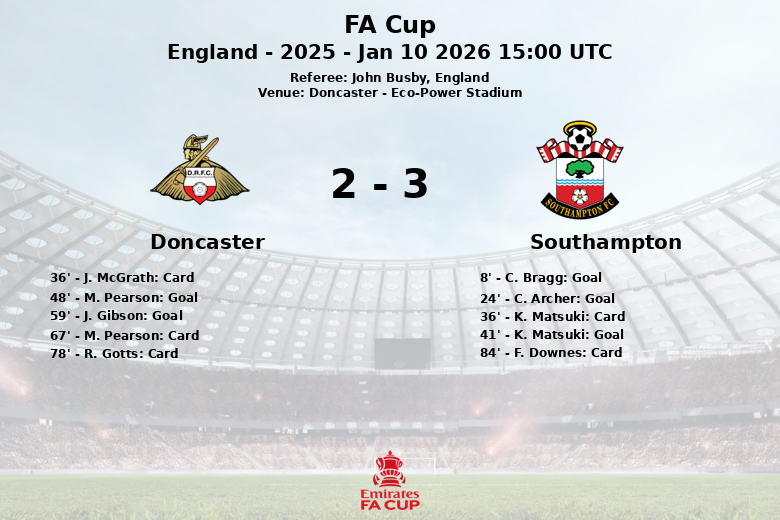 El Southampton avanza a la siguiente ronda de la FA Cup después de un intenso partido frente a un batallador Doncaster. El encuentro, disputado el 10 de enero de 2026, quedará en la memoria de los aficionados presentes en el Eco-Power Stadium.