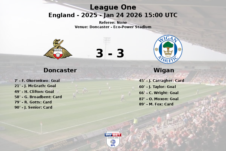 Doncaster, Inglaterra – En un emocionante partido disputado en el Eco-Power Stadium, Doncaster superó a Wigan en un vibrante encuentro de la League One. El partido, correspondiente a la jornada 28 de la temporada 2025, se caracterizó por un alto ritmo y numerosas oportunidades de gol para ambos equipos.