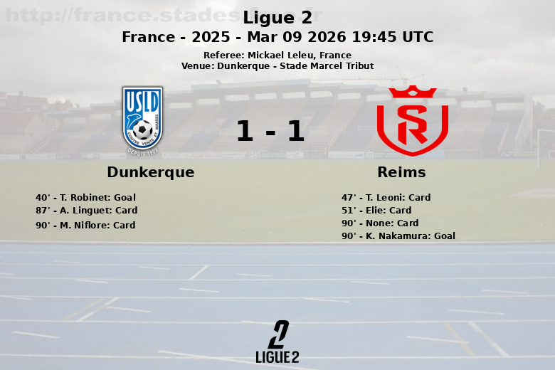 Dunkerque, Francia – En un encuentro disputado en el Stade Marcel Tribut, Dunkerque y Reims empataron en un partido correspondiente a la jornada 26 de la Ligue 2. El encuentro, arbitrado por Mickael Leleu, se caracterizó por un juego físico y táctico, con ambos equipos buscando imponer su estilo.