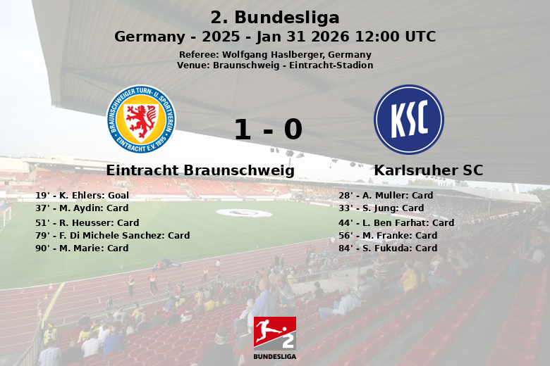 El partido, correspondiente a la jornada 20 de la 2. Bundesliga, dejó claro que la intensidad y la disciplina táctica fueron claves para que el Eintracht Braunschweig sumara tres puntos importantes en casa.