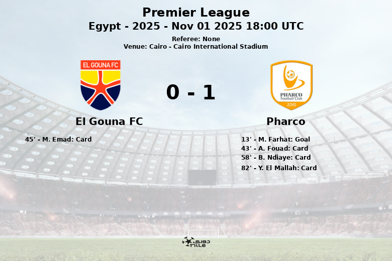 Cairo – En un encuentro disputado en el Cairo International Stadium, Pharco se impuso a El Gouna en un partido correspondiente a la jornada 13 de la Premier League egipcia. El único gol del encuentro llegó temprano, en el minuto 13, gracias a M. Farhat, asistido por B. Ndiaye.