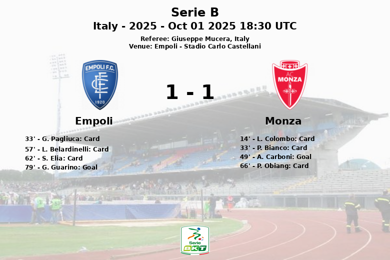 En la segunda mitad, el Monza se adelantó en el minuto 49 con un gol de Carboni, asistido por K. Balde. Sin embargo, Empoli respondió en el minuto 79 con un gol de Guarino, con asistencia de R. Ilie, sellando así el empate definitivo. A pesar de los esfuerzos de ambos equipos, el marcador no se movió más, dejando un sabor agridulce para ambos conjuntos.