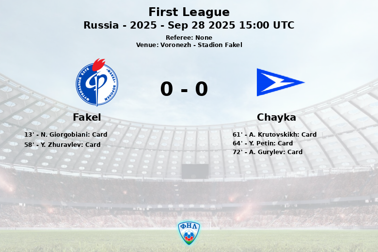 El primer tiempo transcurrió con pocas ocasiones claras y un alto nivel de compromiso físico. La segunda mitad se vio marcada por una tarjeta roja para Fakel al minuto 58, lo que obligó al equipo local a replantear su estrategia. A pesar de la desventaja numérica, Fakel logró mantener su portería a cero. Chayka, si bien buscó capitalizar la superioridad numérica, se topó con una defensa sólida y también incurrió en varias amonestaciones.