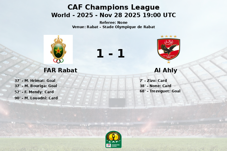Rabat, 28 de noviembre de 2025 – En un encuentro vibrante disputado en el Stade Olympique de Rabat, FAR Rabat y Al Ahly igualaron en un partido correspondiente a la segunda jornada de la temporada regular de la CAF Champions League.