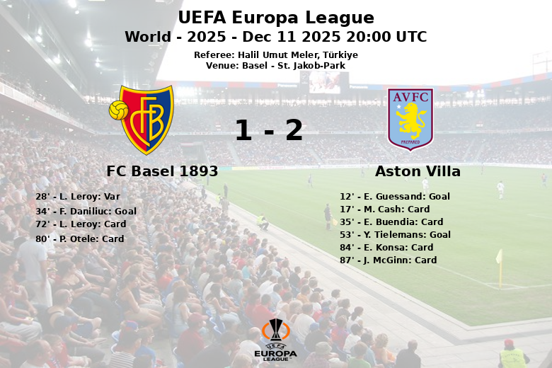 Aston Villa abrió el marcador temprano, al minuto 12, gracias a un gol de E. Guessand tras una buena jugada. Sin embargo, el FC Basel reaccionó y encontró el empate en el minuto 34 con un tanto de F. Daniliuc, asistido por X. Shaqiri. Previamente, un gol de L. Leroy para el Basel había sido anulado por el VAR por fuera de juego en el minuto 28. La primera mitad también estuvo marcada por las tarjetas amarillas a M. Cash y E. Buendia del Aston Villa.