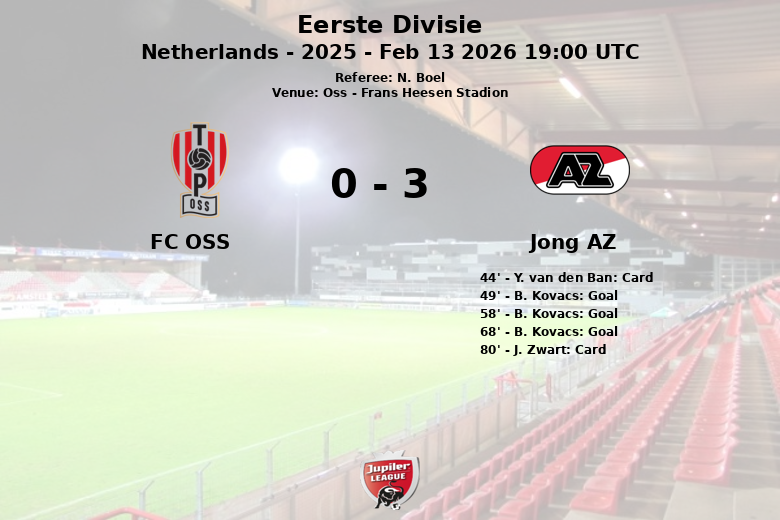 Oss, Países Bajos – En un partido correspondiente a la jornada 27 de la Eerste Divisie, el Jong AZ demostró su superioridad al vencer al FC Oss en su propio estadio. El encuentro, disputado en el Frans Heesen Stadion, fue arbitrado por N. Boel.