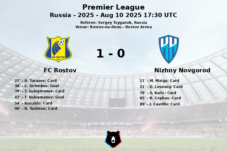 FC Rostov vs Nizhny Novgorod Aug 10 2025 17:30 UTC