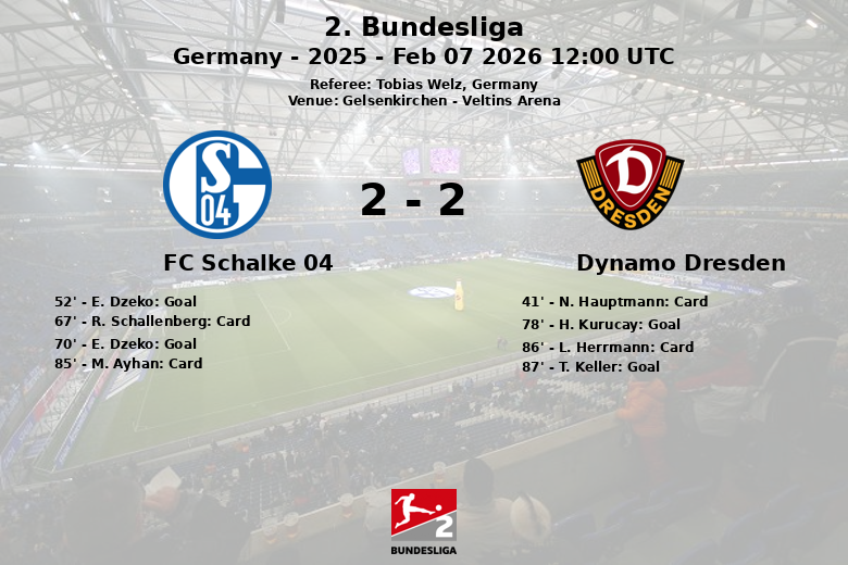 Gelsenkirchen, Alemania – En un encuentro correspondiente a la jornada 21 de la 2. Bundesliga, el FC Schalke 04 se impuso al Dynamo Dresden en el Veltins Arena. A pesar de que el Dynamo Dresden mantuvo una mayor posesión del balón (56% contra 44% del Schalke), el equipo local demostró mayor efectividad de cara al arco.
