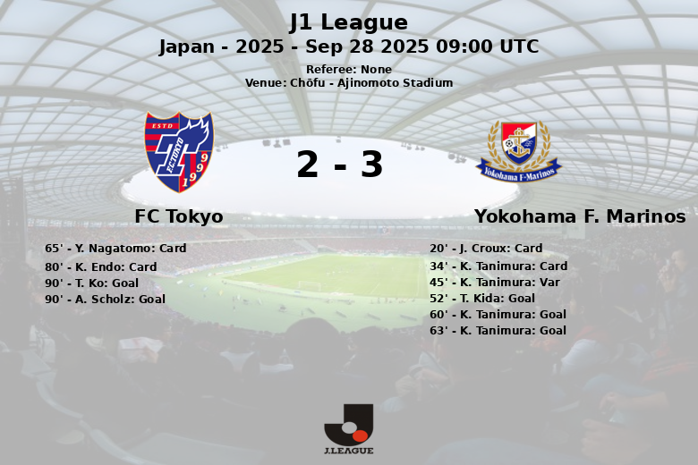 Home Matches FC Tokyo vs Yokohama F. Marinos Sep 28 2025 09:00 UTC