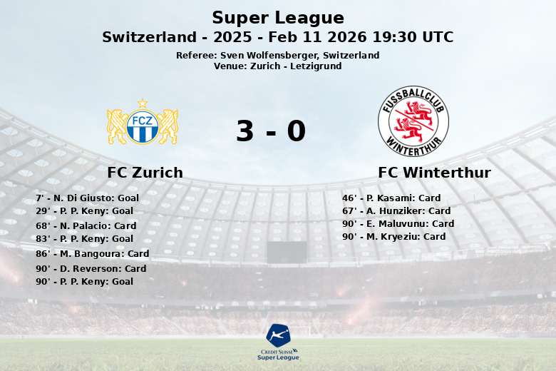 Un momento crucial del partido llegó en el minuto 83, cuando P. P. Keny falló un penalti, desperdiciando la oportunidad de sellar la victoria para el Zurich. Sin embargo, Keny se redimió en el tiempo de descuento, anotando un gol que aseguró la victoria definitiva para su equipo. Reverson, Maluvunu y Kryeziu vieron tarjetas amarillas en los últimos minutos.
