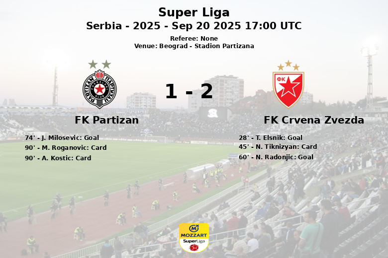 A pesar de los esfuerzos finales del Partizan, incluyendo tarjetas amarillas para M. Roganovic y A. Kostic en el tiempo de descuento, el marcador no se movió más. Las estadísticas finales reflejaron la igualdad en el desarrollo del juego: el Partizan realizó 15 tiros (5 a puerta) y cometió 7 faltas, mientras que el Crvena Zvezda efectuó 13 tiros (6 a puerta) y cometió 13 faltas. Un empate que deja un sabor agridulce para ambos equipos en este clásico serbio.