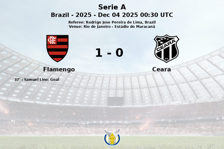 Rio de Janeiro, 4 de diciembre de 2025 – En un partido disputado en el Estádio do Maracanã, Flamengo se impuso a Ceará con un contundente dominio del juego. El único gol del encuentro llegó en el minuto 37, obra de Samuel Lino tras una asistencia de J. Carrascal, suficiente para asegurar la victoria del equipo local.