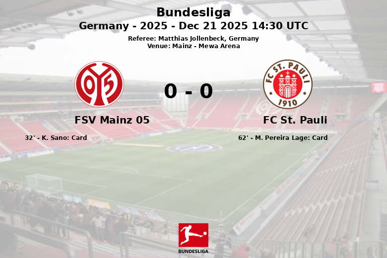 Mainz, Alemania – En un encuentro disputado en el Mewa Arena, el FSV Mainz 05 y el FC St. Pauli empataron sin goles en un partido correspondiente a la jornada 15 de la Bundesliga. El encuentro, arbitrado por Matthias Jollenbeck, se caracterizó por la intensidad y la lucha en el mediocampo.