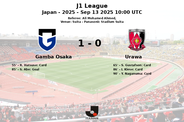 Suita, Japón – Gamba Osaka se impuso ante Urawa en un encuentro reñido disputado en el Panasonic Stadium Suita el 13 de septiembre de 2025. El partido, correspondiente a la jornada 29 de la temporada regular de la J1 League, se caracterizó por una lucha constante en el mediocampo y un juego físico.