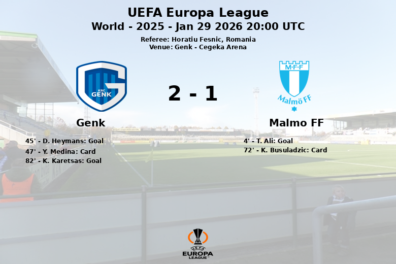 Genk, 29 de enero de 2026 – En un encuentro correspondiente a la fase de grupos de la UEFA Europa League, el KRC Genk logró una victoria por 2-1 sobre el Malmö FF en el Cegeka Arena. El partido, arbitrado por el rumano Horatiu Fesnic, fue testigo de una notable posesión del balón por parte del Genk, que alcanzó el 63%, mientras que el Malmö FF se quedó con el 37%.