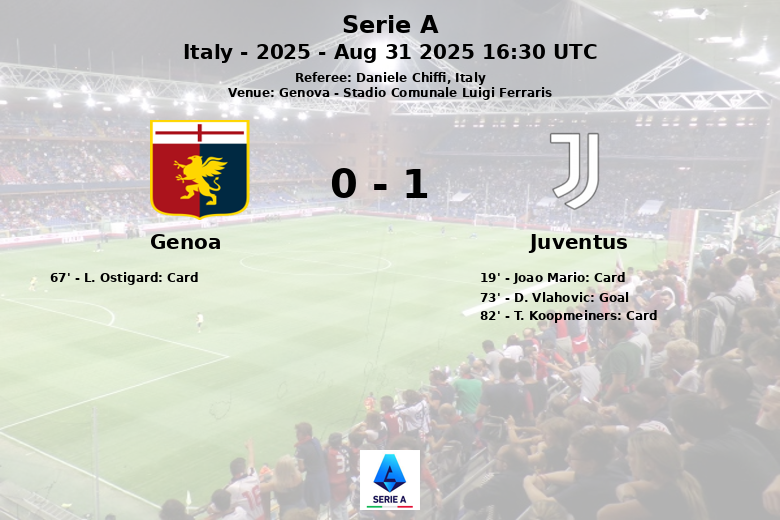 Génova, Italia – En un disputado encuentro correspondiente a la segunda jornada de la Serie A, la Juventus se impuso al Genoa en el Stadio Comunale Luigi Ferraris. El partido, arbitrado por Daniele Chiffi, se caracterizó por su intensidad y táctica.