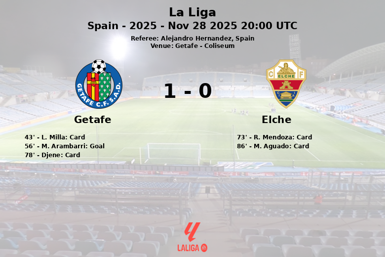 Getafe, España – En un encuentro caracterizado por la intensidad y las disputas en el mediocampo, el Getafe se impuso al Elche en el Coliseum en un partido correspondiente a la jornada 14 de La Liga. El encuentro, arbitrado por Alejandro Hernández, vio un dominio del balón por parte del Elche con un 66% de la posesión, pero fue el Getafe quien logró concretar la diferencia en el marcador.