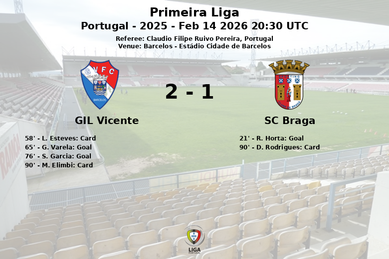 Barcelos, Portugal – En un vibrante encuentro disputado en el Estádio Cidade de Barcelos, el Gil Vicente logró una impresionante remontada ante el SC Braga, dejando un marcador final que reflejó la intensidad del juego. El Braga se adelantó en el minuto 21 con un gol de R. Horta, asistido por V. Gomez, haciendo presagiar un dominio del equipo visitante. Sin embargo, el Gil Vicente demostró su temple y resiliencia en la segunda mitad.