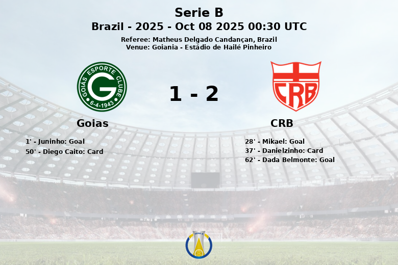 En un partido disputado en el Estádio de Hailé Pinheiro en Goiania, el CRB se impuso al Goiás con un marcador final de 2 a 1 en la Serie B brasileña. El encuentro, arbitrado por Matheus Delgado Candançan, comenzó con un gol tempranero de Juninho para el Goiás en el primer minuto, ilusionando a la afición local. Sin embargo, el CRB reaccionó con determinación.