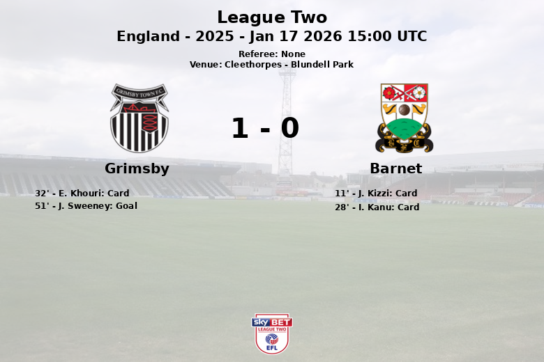 Cleethorpes, Inglaterra – En un encuentro marcado por la intensidad y la disciplina, el Grimsby Town se impuso al Barnet en Blundell Park, en partido correspondiente a la jornada 27 de la League Two. El partido, celebrado el 17 de enero de 2026, estuvo signado por una temprana expulsión de J. Kizzi del Barnet a los 11 minutos, que condicionó el desarrollo del juego.