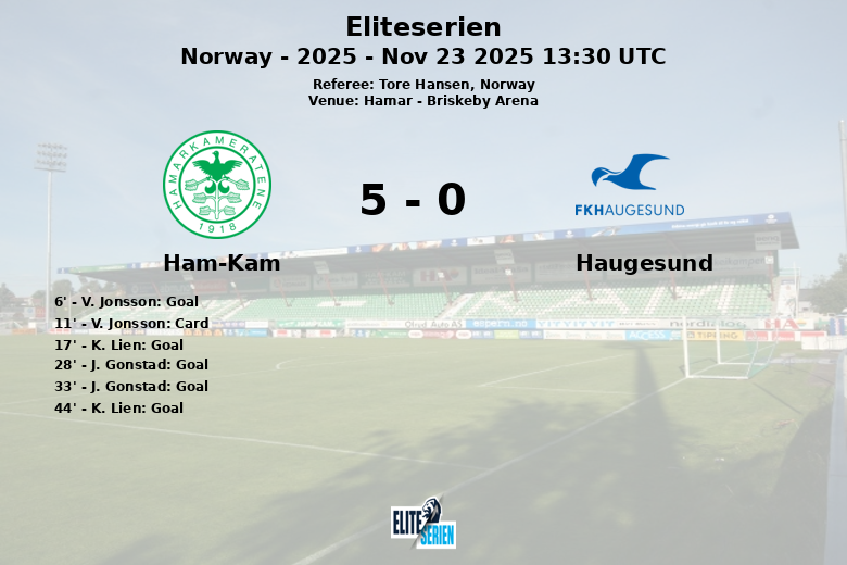 El Haugesund, aunque luchó por encontrar su ritmo, se vio superado por la solidez defensiva y la efectividad ofensiva del Ham-Kam. K. Lien volvió a marcar al minuto 44, con otra asistencia de A. Ekeroth, sellando una primera mitad espectacular para el equipo local.
