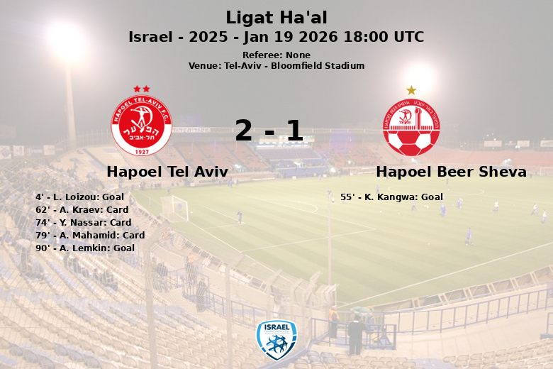 Tel-Aviv, Israel – En un partido disputado en el Bloomfield Stadium, correspondiente a la jornada 19 de la Ligat Ha’al, el Hapoel Tel Aviv y el Hapoel Beer Sheva empataron en un encuentro que mantuvo a los aficionados al borde de sus asientos. El Hapoel Tel Aviv, con un 29% de posesión, logró concretar dos goles a pesar de tener menos oportunidades. L. Loizou abrió el marcador temprano, al minuto 4, con un gol que encendió la esperanza local. Sin embargo, el Hapoel Beer Sheva, dominando la posesión con un 71%, respondió en la segunda mitad con un gol de K. Kangwa al minuto 55. El partido se volvió tenso, con varias tarjetas amarillas mostradas al Hapoel Tel Aviv. Cuando parecía que la victoria se escapaba, A. Lemkin anotó en el minuto 90, con asistencia de L. Rotman, sellando el empate. A pesar de los 17 tiros del Hapoel Beer Sheva, la defensa del Hapoel Tel Aviv resistió, aunque cometieron 14 faltas en comparación con las 11 del equipo rival. El partido terminó con un sabor agridulce para ambos equipos, en un encuentro caracterizado por la intensidad y la lucha constante.