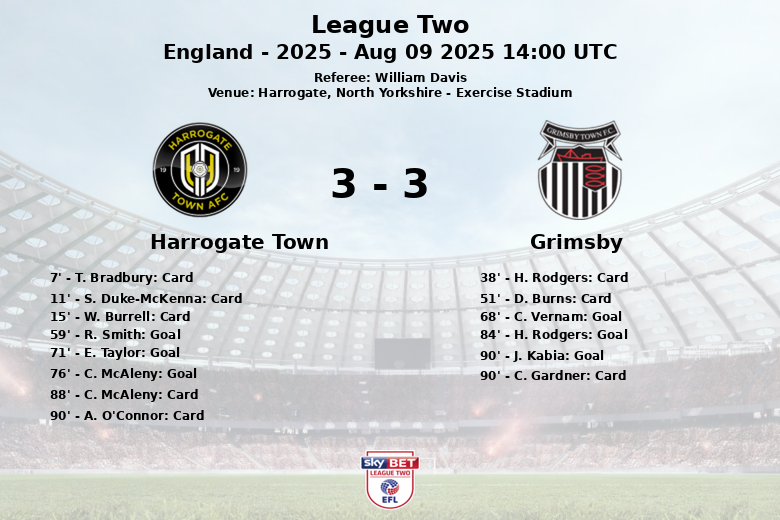 Harrogate Town vs Grimsby Aug 09 2025 14:00 UTC