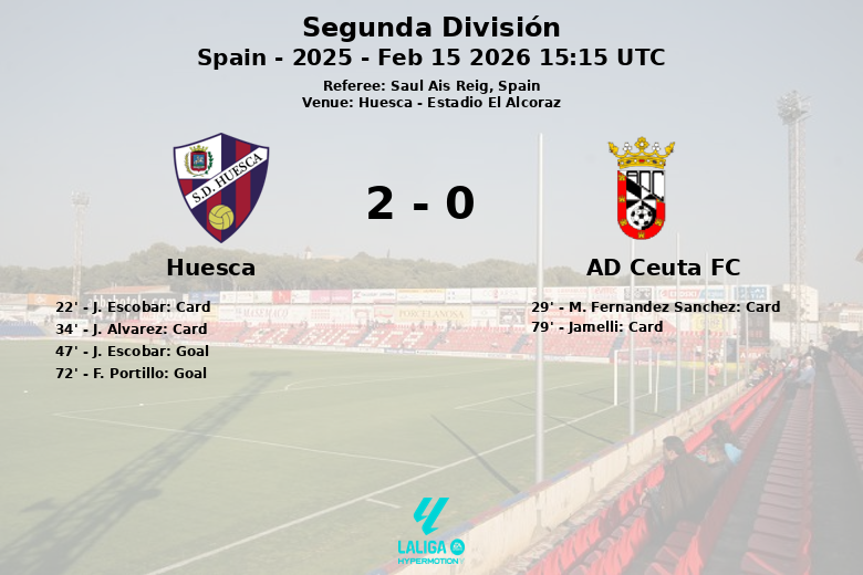 En un encuentro correspondiente a la jornada 26 de la Segunda División, el Huesca logró una importante victoria en casa frente al AD Ceuta por 2 a 0. El partido, disputado en el Estadio El Alcoraz, se caracterizó por la intensidad y la lucha en el mediocampo.