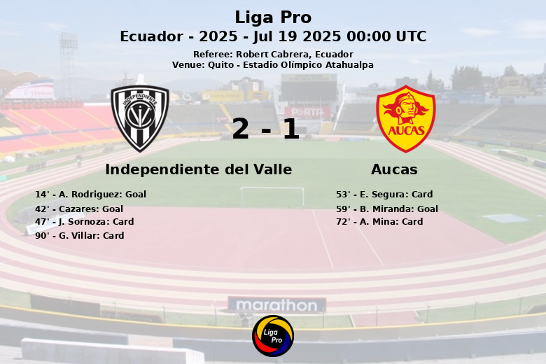 Quito, Ecuador – Independiente del Valle se llevó la victoria en el Estadio Olímpico Atahualpa tras un partido con altibajos frente a Aucas. El encuentro, válido por la fecha 21 de la Liga Pro 2025, finalizó con una diferencia de un gol a favor del Independiente.