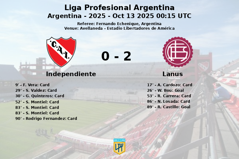 Independiente vs Lanus Oct 13 2025 00:15 UTC
