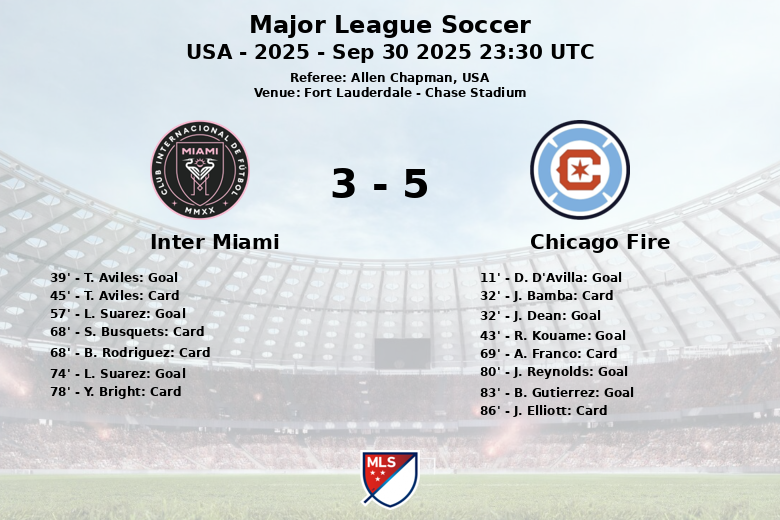 La segunda mitad fue un intercambio constante de goles. L. Suarez anotó para el Inter Miami al minuto 57, asistido por B. Rodriguez, y nuevamente al minuto 74. Sin embargo, el Chicago Fire no se rindió y J. Reynolds marcó al minuto 80, seguido por B. Gutierrez al minuto 83, para sellar el empate final. El partido fue también marcado por varias tarjetas amarillas, con cuatro para el Inter Miami y tres para el Chicago Fire. El árbitro Allen Chapman tuvo trabajo extra en este dinámico encuentro. El Inter Miami intentó 24 tiros, 10 de ellos a puerta, mientras que el Chicago Fire realizó 11 disparos, con 6 dirigidos al arco.