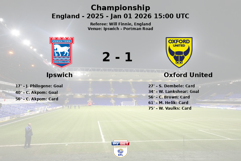 Ipswich, Inglaterra – En un partido disputado en Portman Road, el Ipswich Town y el Oxford United empataron en un encuentro que mantuvo a los aficionados al borde de sus asientos. El Ipswich dominó la posesión con un 65%, mostrando un juego ofensivo con 19 tiros, aunque solo 7 encontraron la portería. J. Philogene abrió el marcador para el Ipswich al minuto 17, con una asistencia de J. Cajuste, desatando la euforia local. Sin embargo, el Oxford United respondió al minuto 34 con un gol de W. Lankshear, asistido por F. Krastev, equilibrando las acciones. Cerca del final del primer tiempo, C. Akpom volvió a adelantar al Ipswich al minuto 40.
