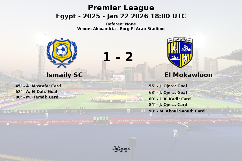 El Mokawloon abrió el marcador en el minuto 55 con un gol de J. Ojera. Ismaily SC reaccionó rápidamente y A. El Dah empató el partido en el minuto 62. El encuentro mantuvo su intensidad, con ambos equipos buscando el gol. J. Ojera volvió a marcar para El Mokawloon en el minuto 68.