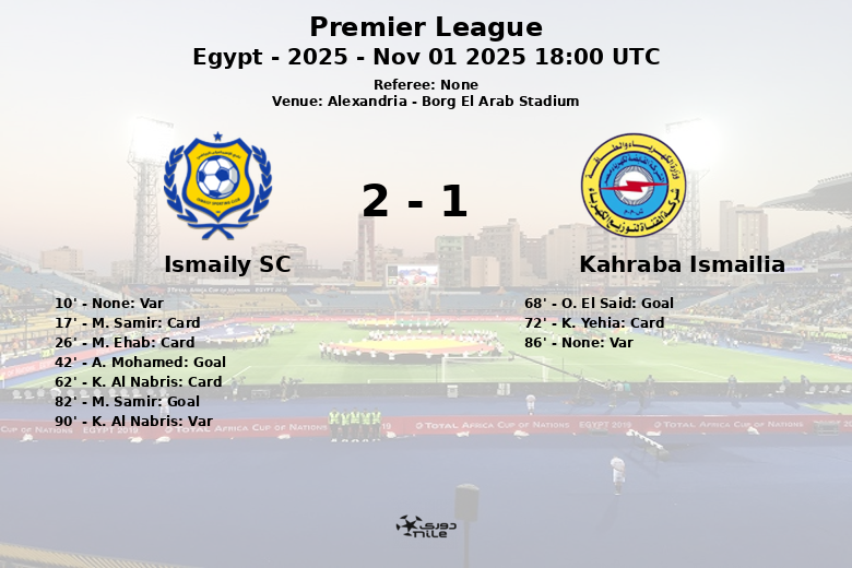 El Ismaily SC se adelantó al minuto 42 gracias a un gol de A. Mohamed, asistido por A. Mostafa. Sin embargo, Kahraba Ismailia respondió en la segunda mitad con un tanto de O. El Said al minuto 68, tras una asistencia de M. Ounajem. Cuando parecía que la victoria se inclinaba hacia el Ismaily SC, M. Samir anotó al minuto 82, dándole una ventaja crucial a su equipo.