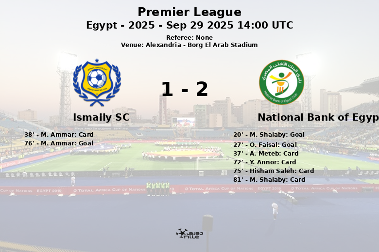 Alejandría, Egipto – El National Bank of Egypt se impuso al Ismaily SC en un encuentro disputado en el Borg El Arab Stadium, válido por la novena jornada de la Premier League. El partido, jugado en un ambiente intenso, finalizó con una victoria para el equipo local.